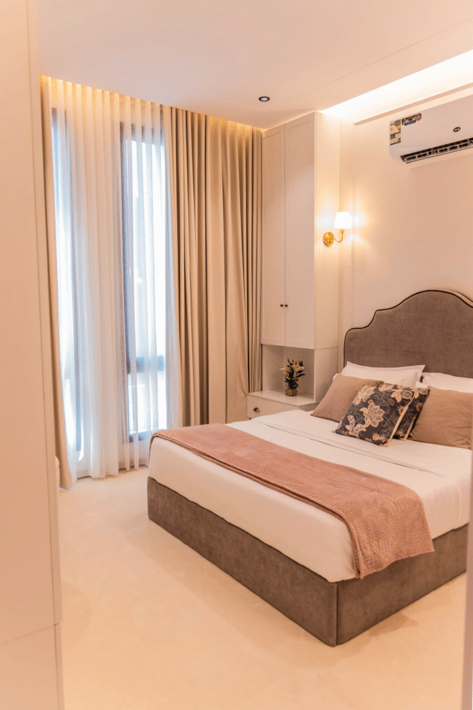 غرف النوم تقدم ملاذًا هادئًا، مع ألوان مريحة وإضاءة طبيعية تحاكي النهار. تم اختيار الأثاث الفاخر بعناية لتعزيز الراحة وتوفير تجربة نوم مثالية داخل فيلا فاخرة.